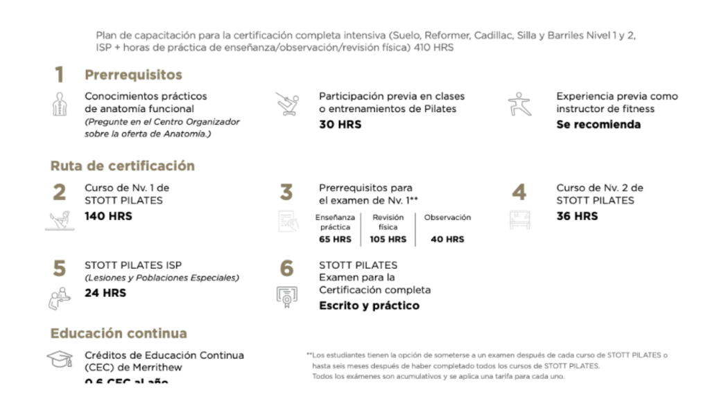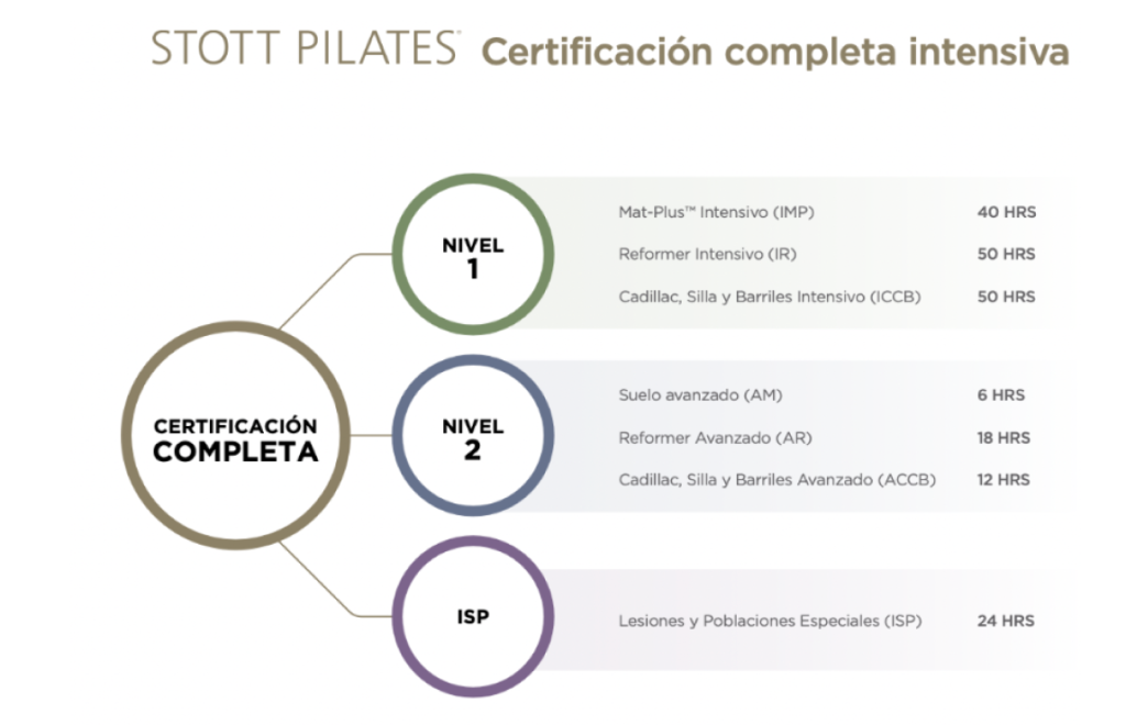 NIVEL 1: ESENCIAL E INTERMEDIO STOTT PILATES® INTENSIVE REFORMER STOTT PILATES® INTENSIVE MAT-PLUS™ STOTT PILATES® INTENSIVE CADILLAC, CHAIR & BARRELS